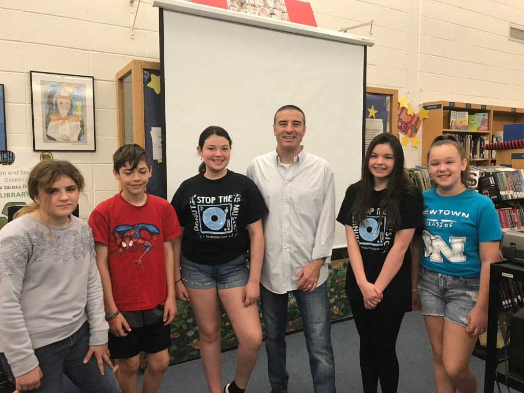 With 6th grade students from Newtown Elementary ~ May 2019 Chatting with Justin Swope, a 5th grader at Newtown Elementary School ~ May 2019It was an honor to sign the library wall at Newton Elementary School #FORTUNATE
