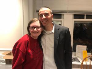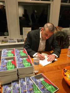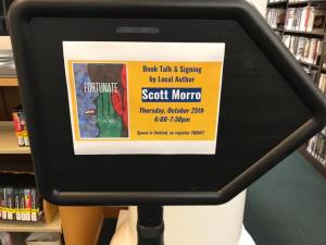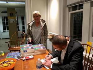 Sign showing visitors where to sit for the book talk at the Nazareth LibrarySpeaking about FORTUNATE to the crowd at Nazareth LibraryAnswering questions and discussing my newest writing projects at the Nazareth LibraryBefore the Nazareth Library presentation and book signing with my wife, LisaOne of my favorite things ~ signing books!With my wife and our youngest son, Ryan, at the Nazareth LibraryWith former student, Zoe Frost, at the Nazareth LibraryWith Clare and Brittany at the Nazareth LibrarySigning a book for my friend, Clare